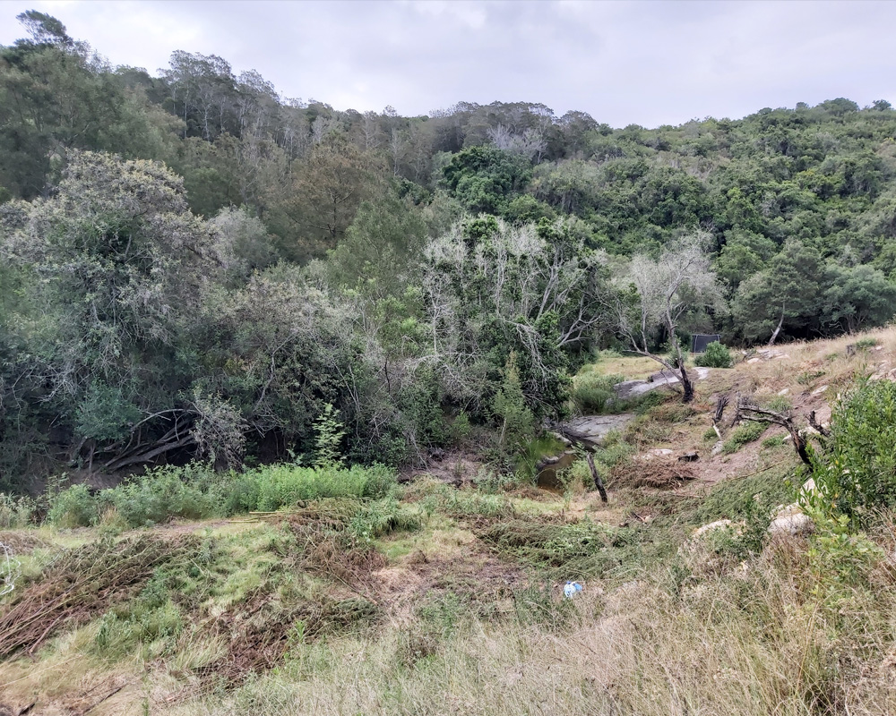 I am full of ideas.  Crazy S, the builder left an old sleeper couch here, so I make M help me lug it halfway up a hill to one of my favourite viewpoints.  A friend did point out to me that it would be more comfortable if it had cushions!  I promise to lug those up too.  Anyone for sundowners?